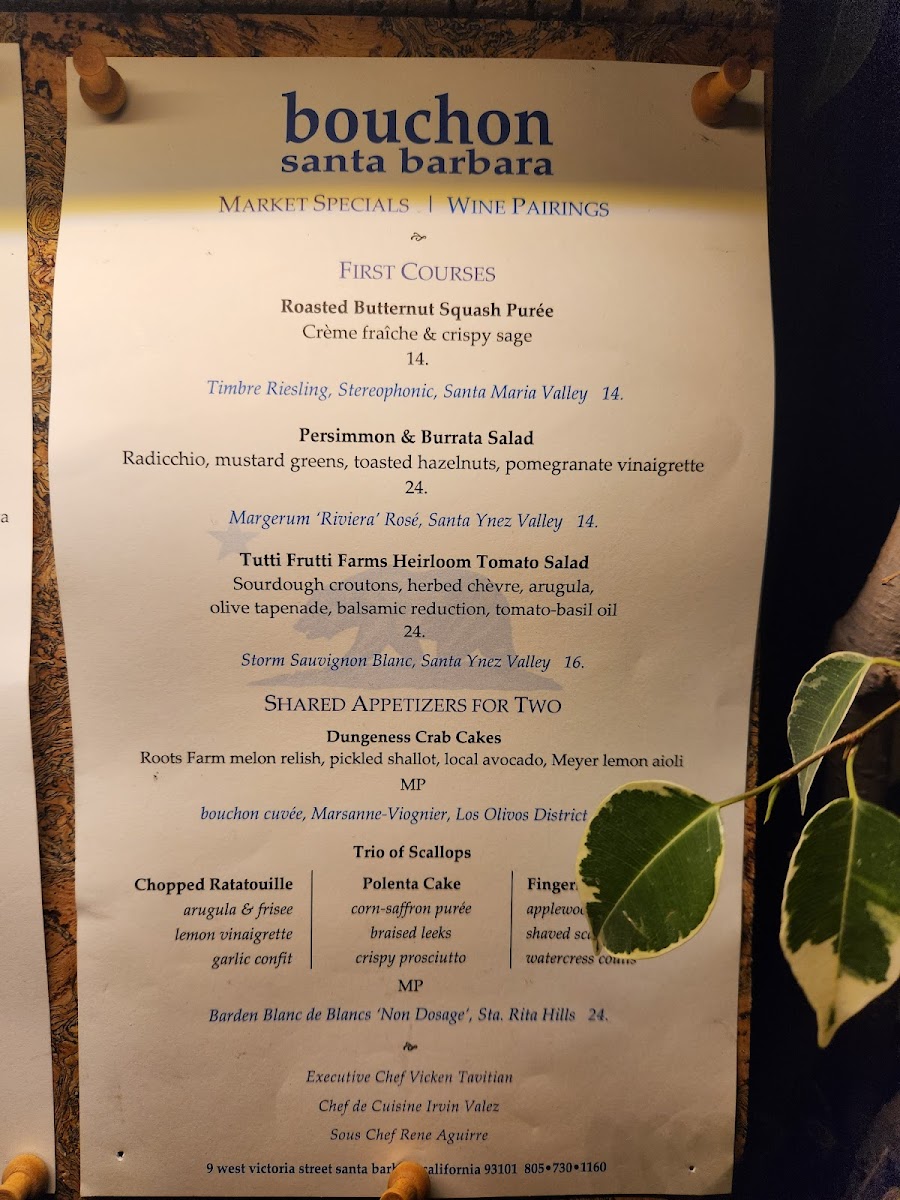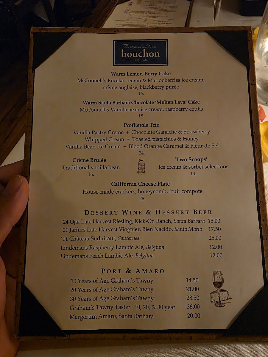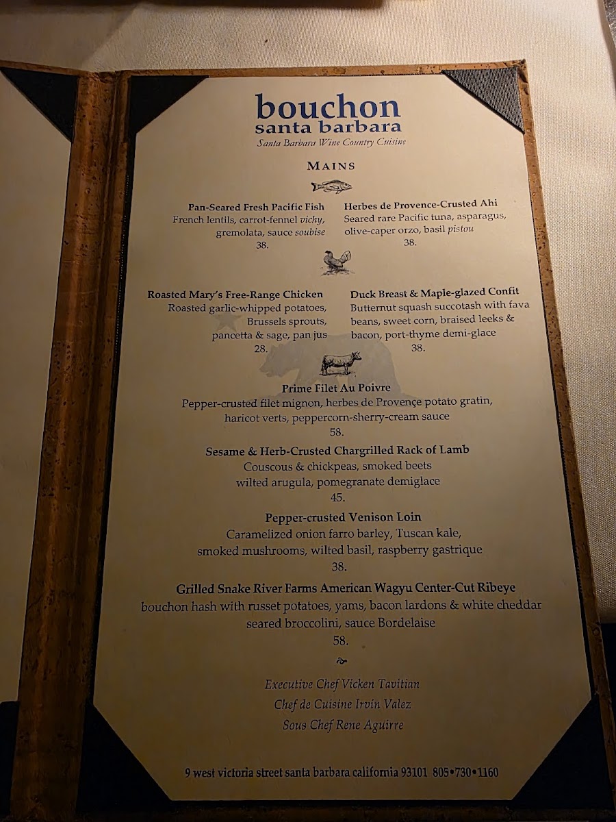 If you're looking for a dining experience that combines classic French cuisine with a cozy atmosphere, the Bouchon Santa Barbara Menu is the perfect place to explore. Located at 9 W Victoria St, Santa Barbara, this charming restaurant offers a range of delicious dishes that showcase the best of French-inspired flavors. From mouthwatering starters like fresh oysters and crisp salads to hearty mains such as tender steaks and flavorful seafood, there’s something to satisfy every craving. Pair your meal with a selection from their impressive wine list, and you’re in for a treat. Whether you’re here for a casual lunch or a romantic dinner, the menu offers a comforting yet refined dining experience, ideal for any occasion. With every dish thoughtfully crafted, Bouchon Santa Barbara brings a touch of elegance to Santa Barbara's dining scene.